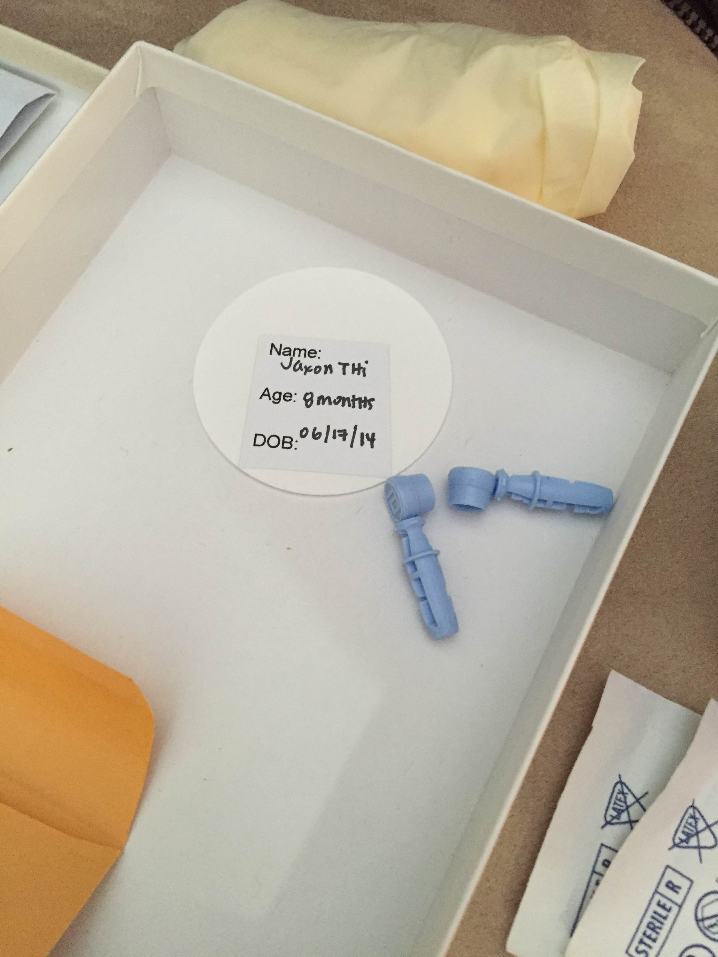 I knew it was coming. I could just sense it. My mommy and daddy were definitely planning something and I knew I wouldn’t like it. Who knew that my mommy would actually stick a GIANT NEEDLE in my foot so that she can get a sample of my blood! They told me it would make me feel better later, but from now on, I’m keeping my feet away from them and my socks on.